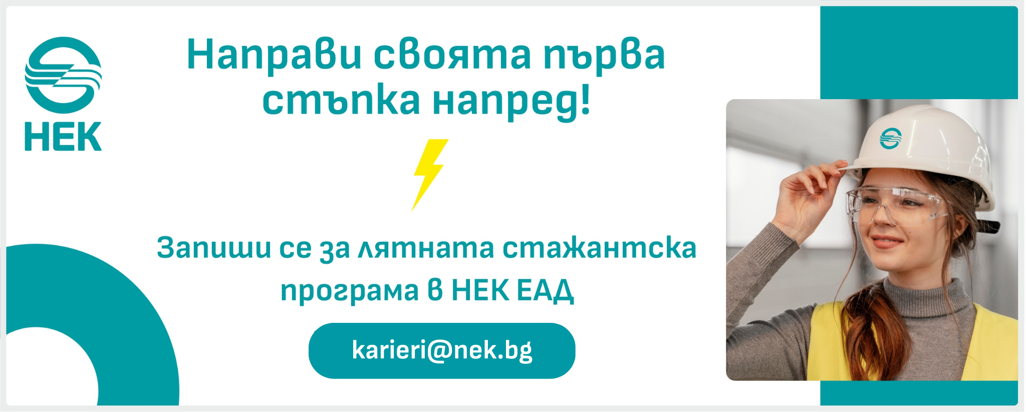 Ако си готов да направиш своята първа стъпка напред, заяви своето желание като изпратиш CV на адрес karieri@nek.bg, с тема "Летен стаж", за да станеш част от нас.